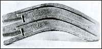 つくられた鋳物製品は、中国大陸から渡来した銅利器の模倣から始まり、銅鐸や銅釧〔くしろ〕(腕輪)、楯などわが国独自の形状・用途のものに移っていった。(写真2参照)